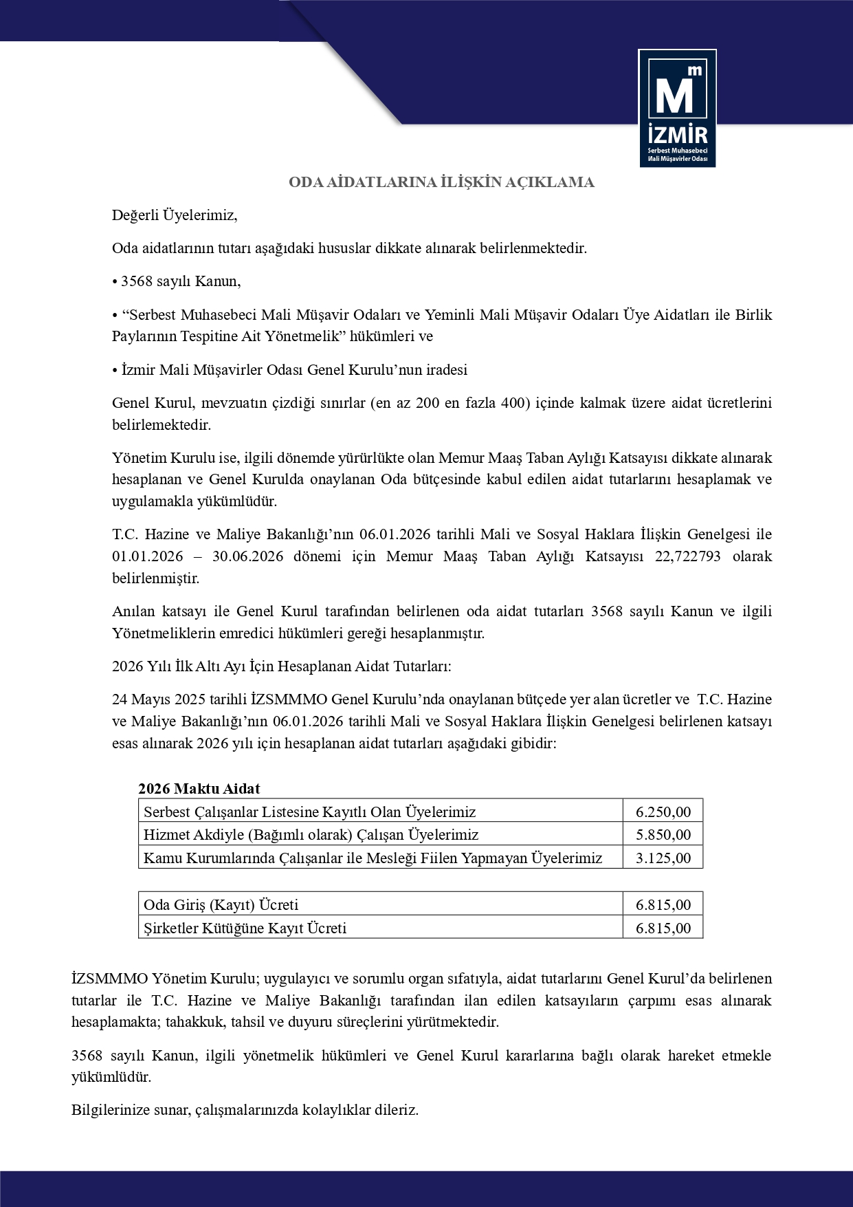 Oda Aidatlarına İlişkin Açıklama