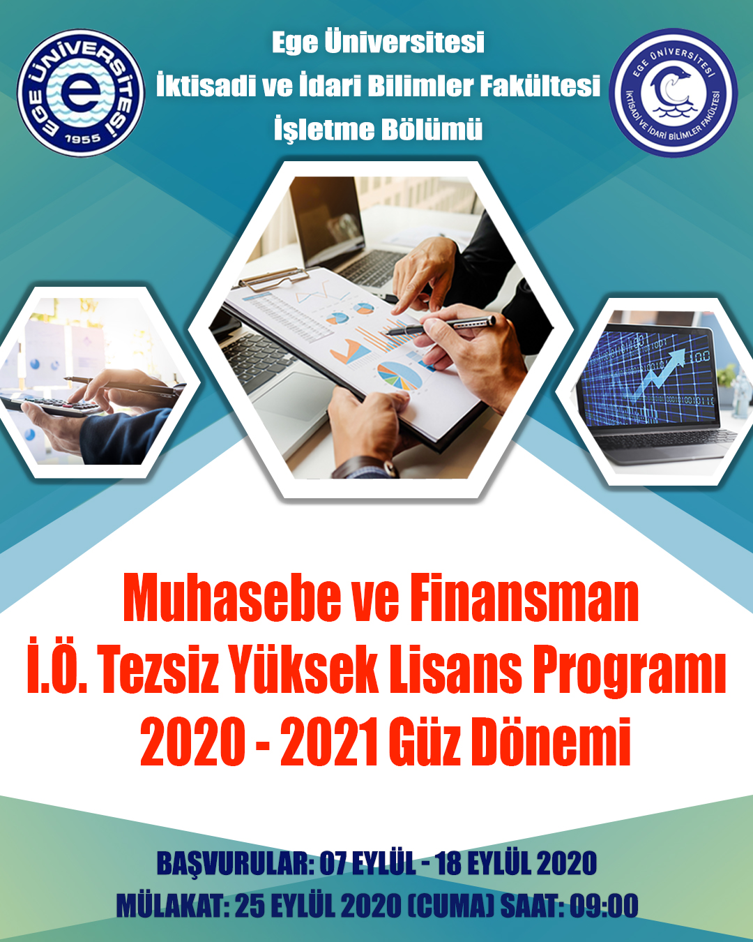Ege Üniversitesi İktisadi ve İdari Bilimler Fakültesi İşletme Bölümü Muhasebe ve Finansman İ.Ö. Tezsiz YL programı zengin içeriği ve tecrübeli kadrosu ile 2020-2021 Güz Döneminde açılıyor.