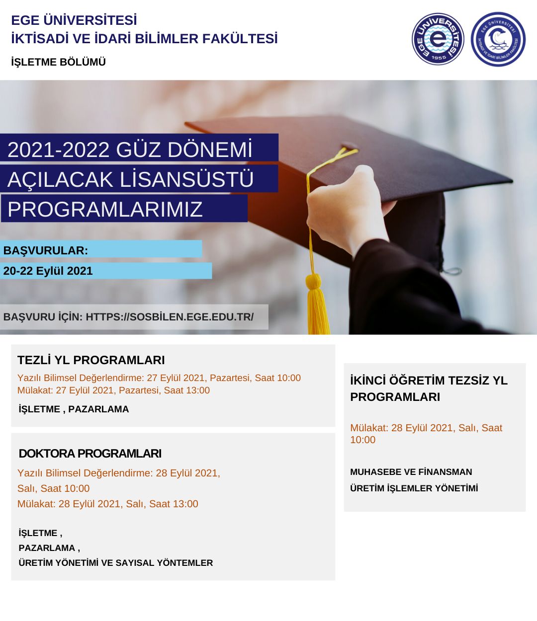 Ege Üniversitesi İİBF 2021-2022 Güz Dönemi Açılacak Lisansüstü Programları 20 Eylül 2021 Pazartesi3457