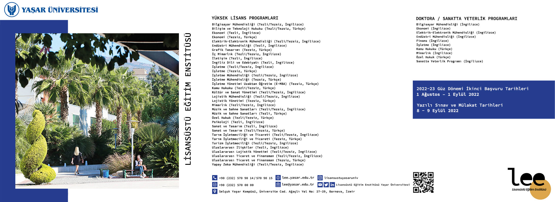 Yaşar Üniversitesi Lisansüstü Eğitim Enstitüsü 2022-2023 Akademik Yılı Güz Dönemi Başvuruları 25 Temmuz 2022 Pazartesi1810 LİSANSÜSTÜ EĞİTİM PROGRAMLARI BROŞÜRÜ: