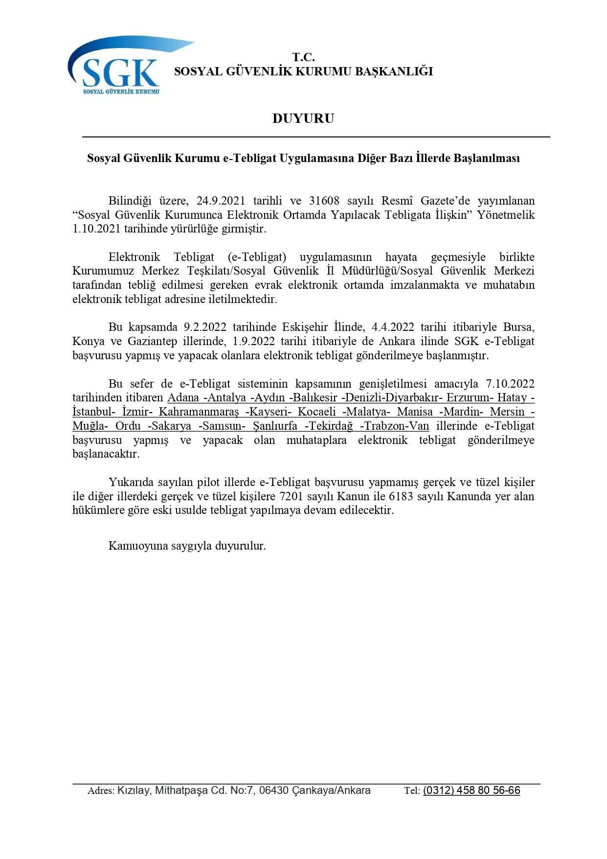 İzmir'de SGK e-Tebligat Uygulaması Başladı