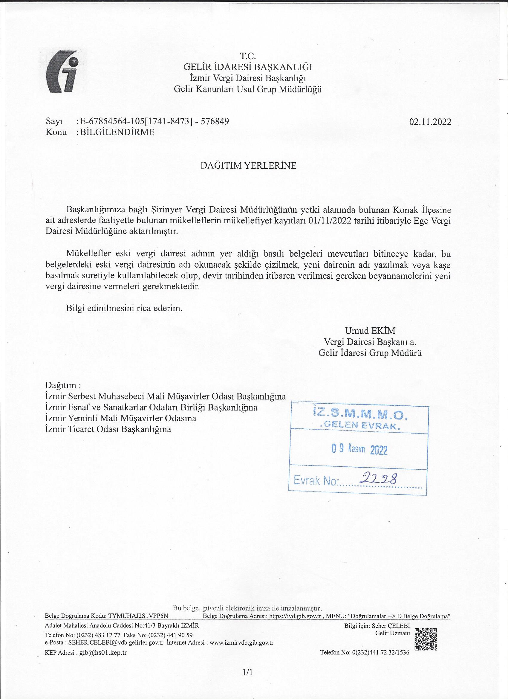 Şirinyer Vergi Dairesine Bağlı Mükellefler Hakkında Bilgilendirme