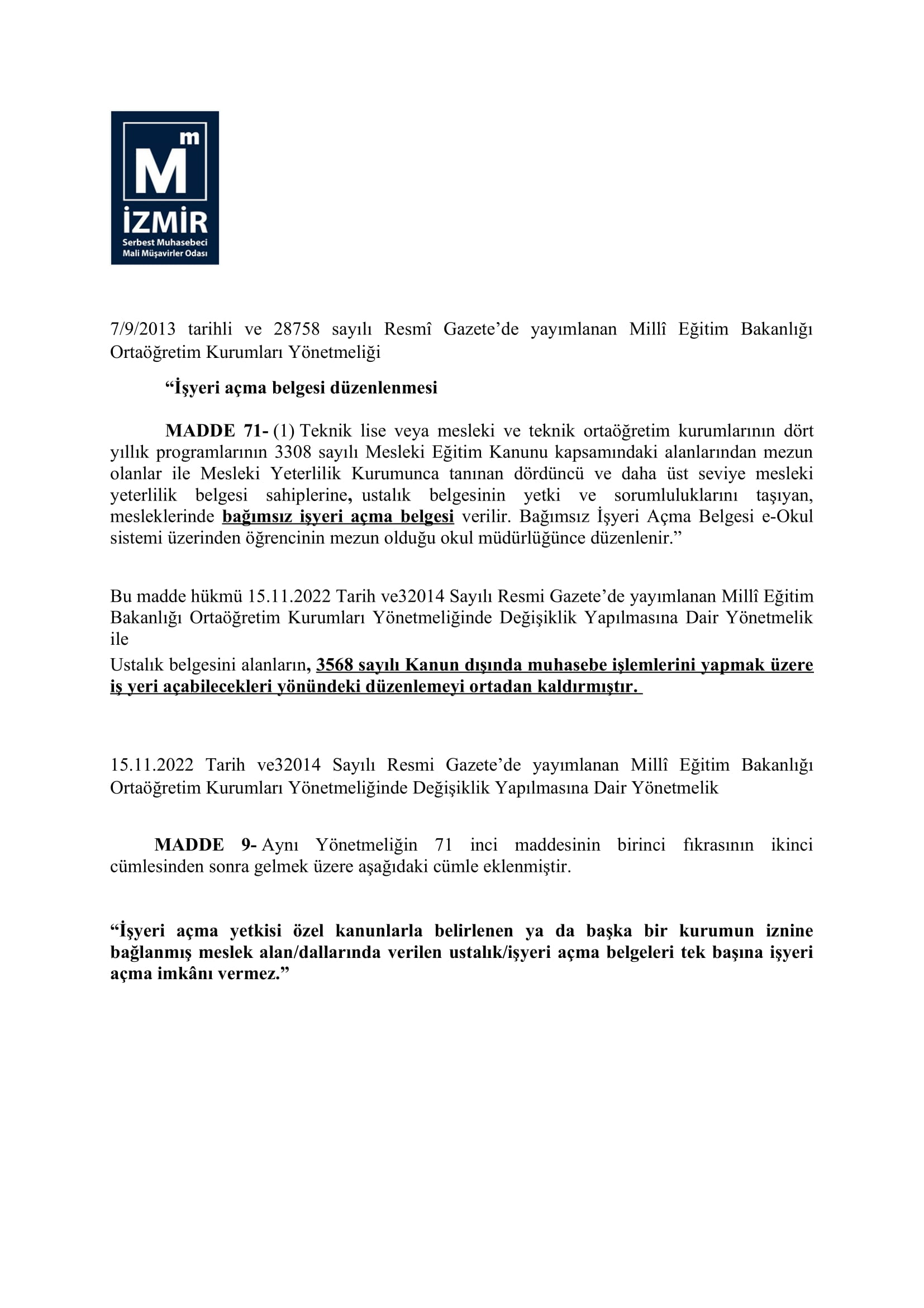 Millî Eğitim Bakanlığı Ortaöğretim Kurumları Yönetmeliğinde Değişiklik Yapılmasına Dair Yönetmelik 15 Kasım 2022 Salı1671 –– Millî Eğitim Bakanlığı Ortaöğretim Kurumları Yönetmeliğinde Değişiklik Yapılmasına Dair Yönetmelik