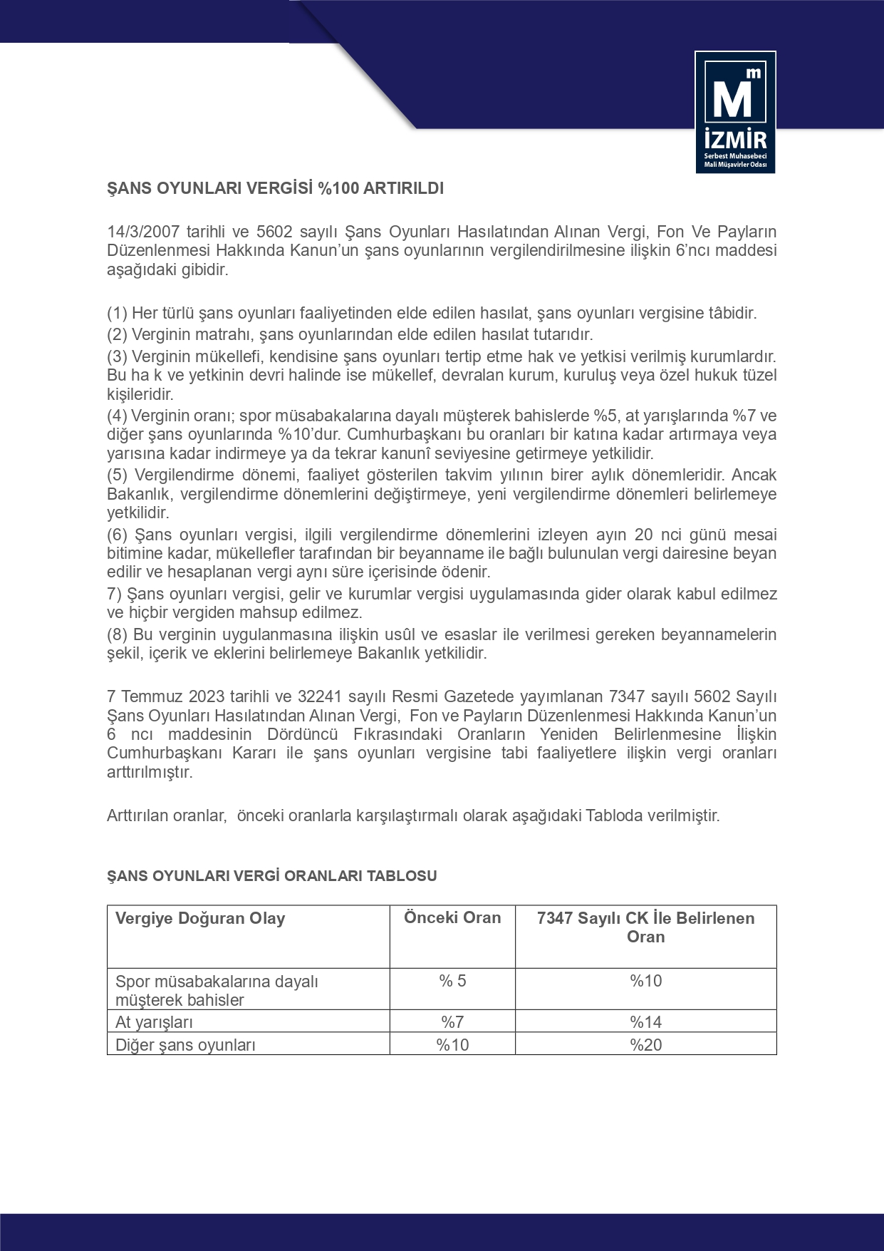 - Diğer şans oyunlarında %10 ’dan %20’ye