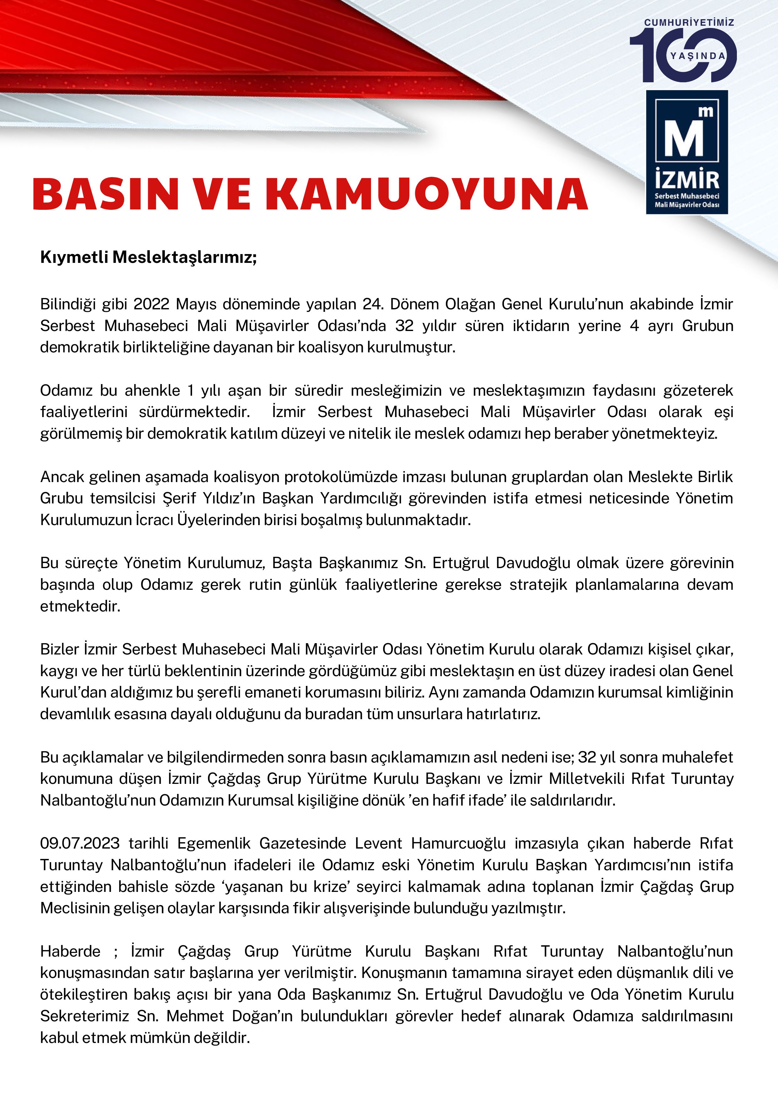 Basın ve Kamuoyuna Duyuru