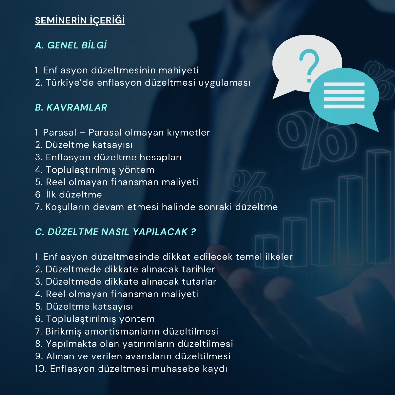 SEMİNER "Enflasyon Düzeltmesi Farkındalık Semineri" 1 Kasım 2023 Çarşamba2108 KAYIT İÇİN LÜTFEN TIKLAYINIZ