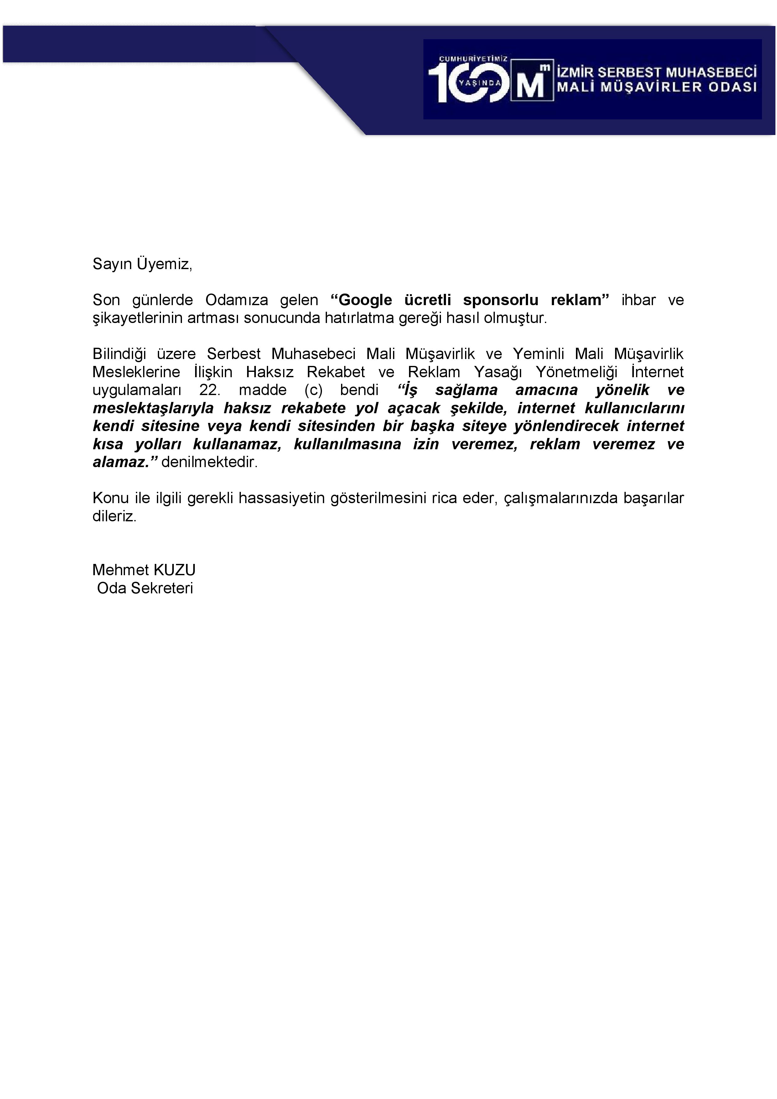 Reklam Yasağı Hakkında Duyuru