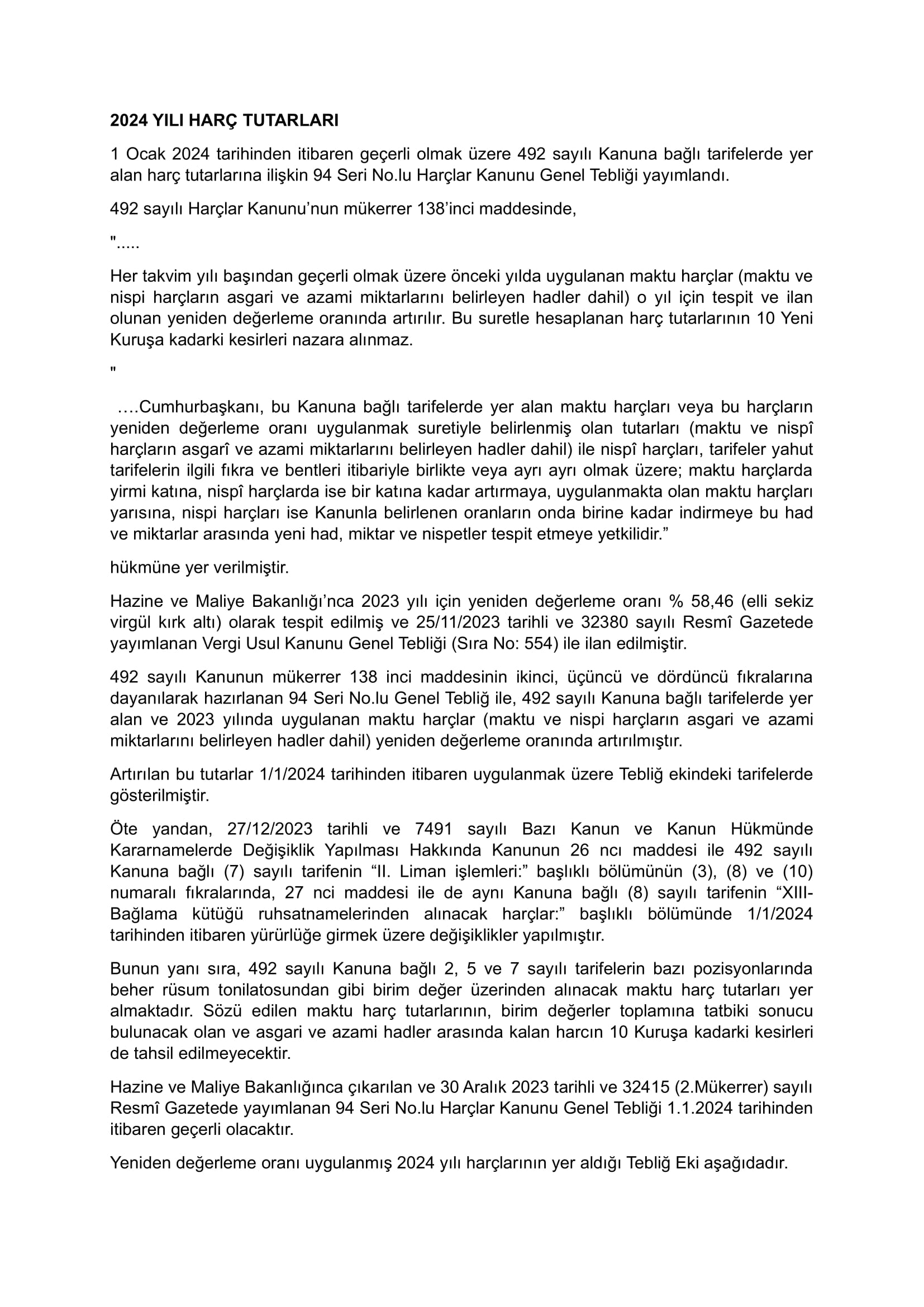 –– Harçlar Kanunu Genel Tebliği (Seri No: 94)