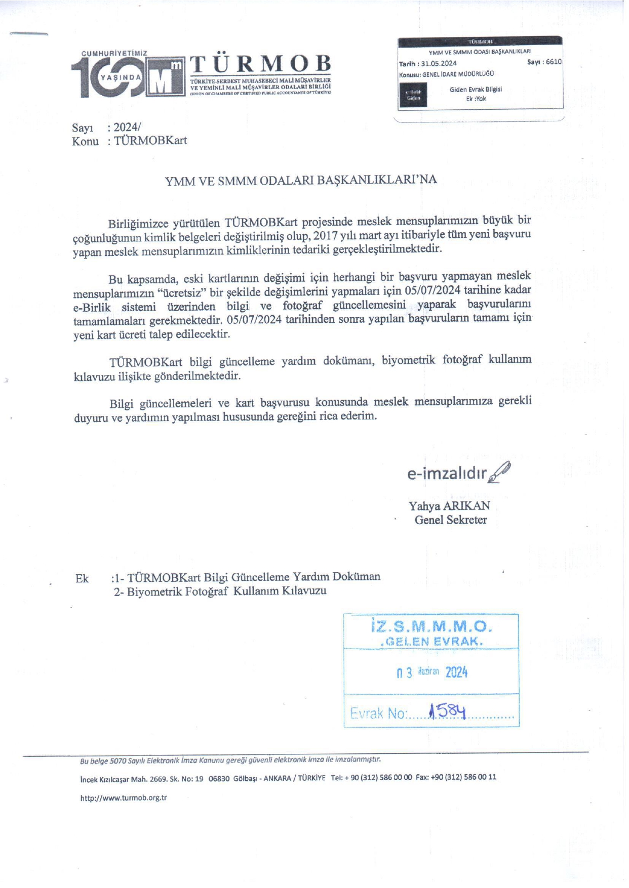 TÜRMOBKart 3 Haziran 2024 Pazartesi4989 Ek:1 TÜRMOB Kart Bilgi Güncelleme Yardım Dökümanı Ek:2 Biyometrik Fotoğraf Kullanım Kılavuzu