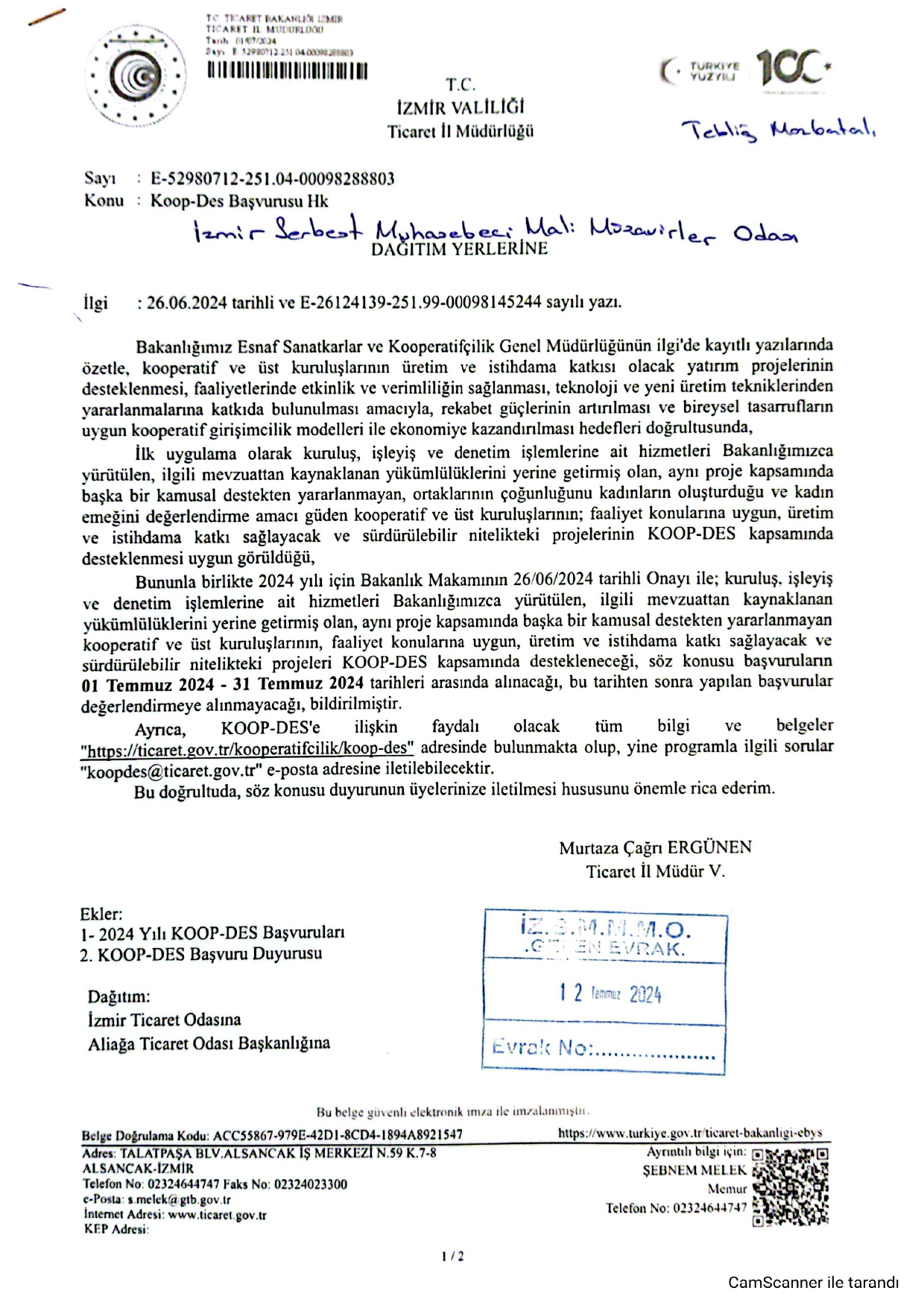Kooperatif ve Üst Kuruluşlarının Denetimine Dair Yönetmelikte Satış Hasılatının Artırılması Hakkında Duyuru
