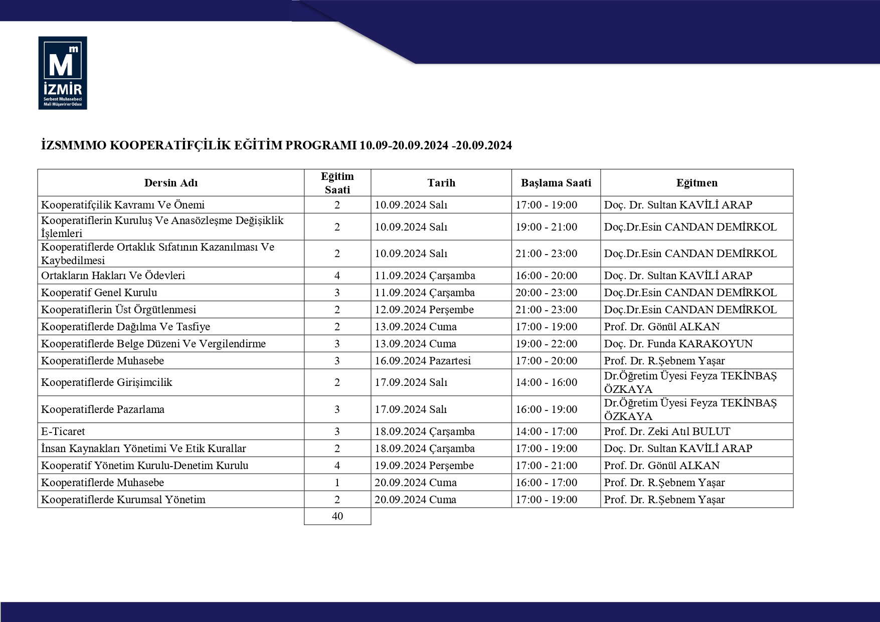 10-20 EYLÜL 2024 KOOPERATİFÇİLİK EĞİTİM PROGRAMI 9 Eylül 2024 Pazartesi1838 Pdf için lütfen tıklayınız.