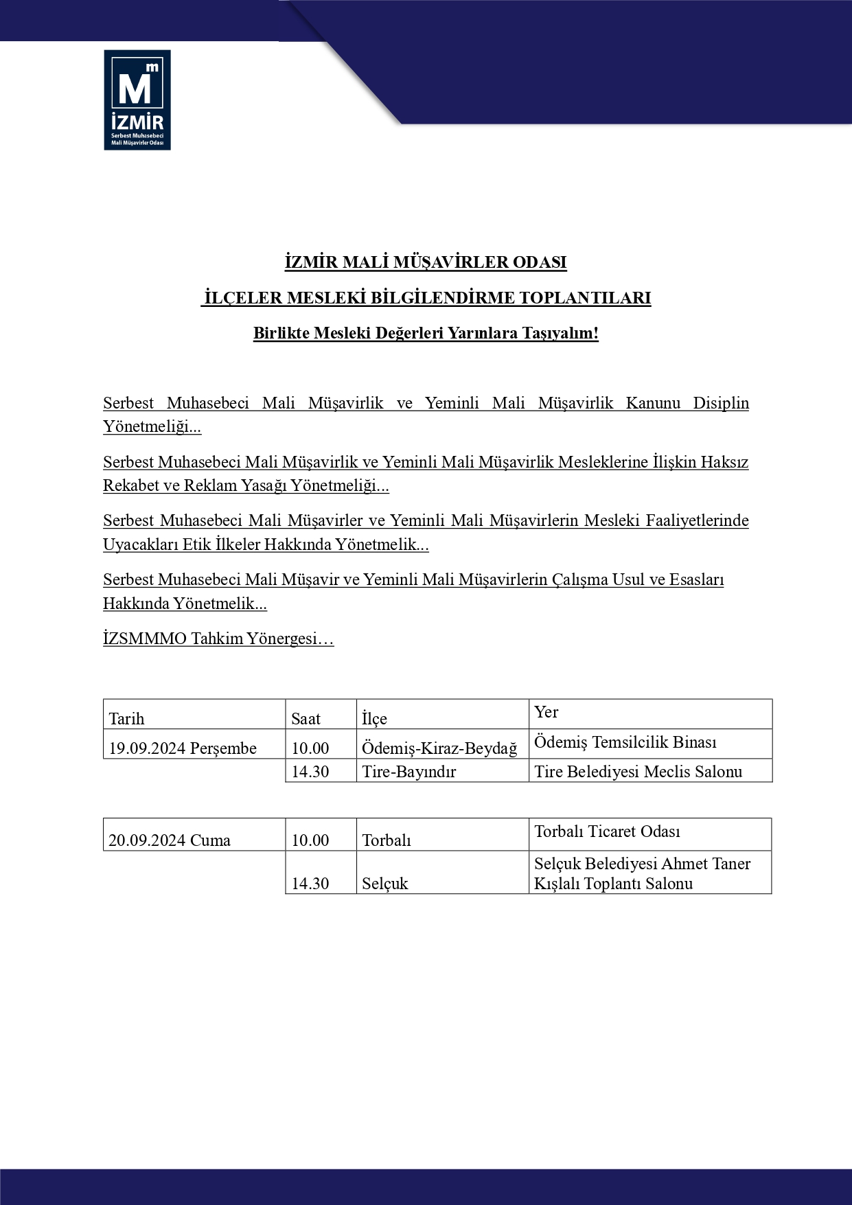 İlçeler Mesleki Bilgilendirme Toplantıları
