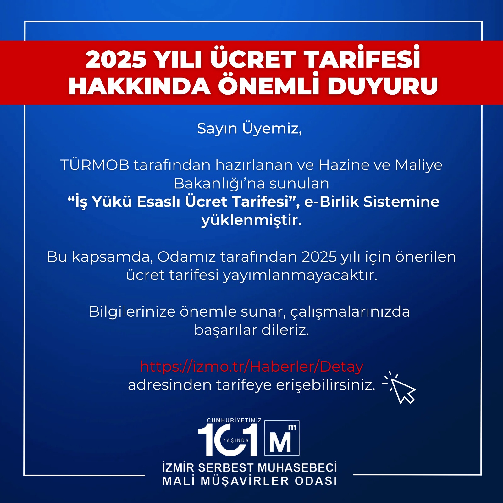 Mesleki birlik ve dayanışma bilinciyle, uzun yılların emeğiyle hazırlanan bu tarifenin uygulanmasında sağlayacağınız katkıya olan inancımız tamdır.