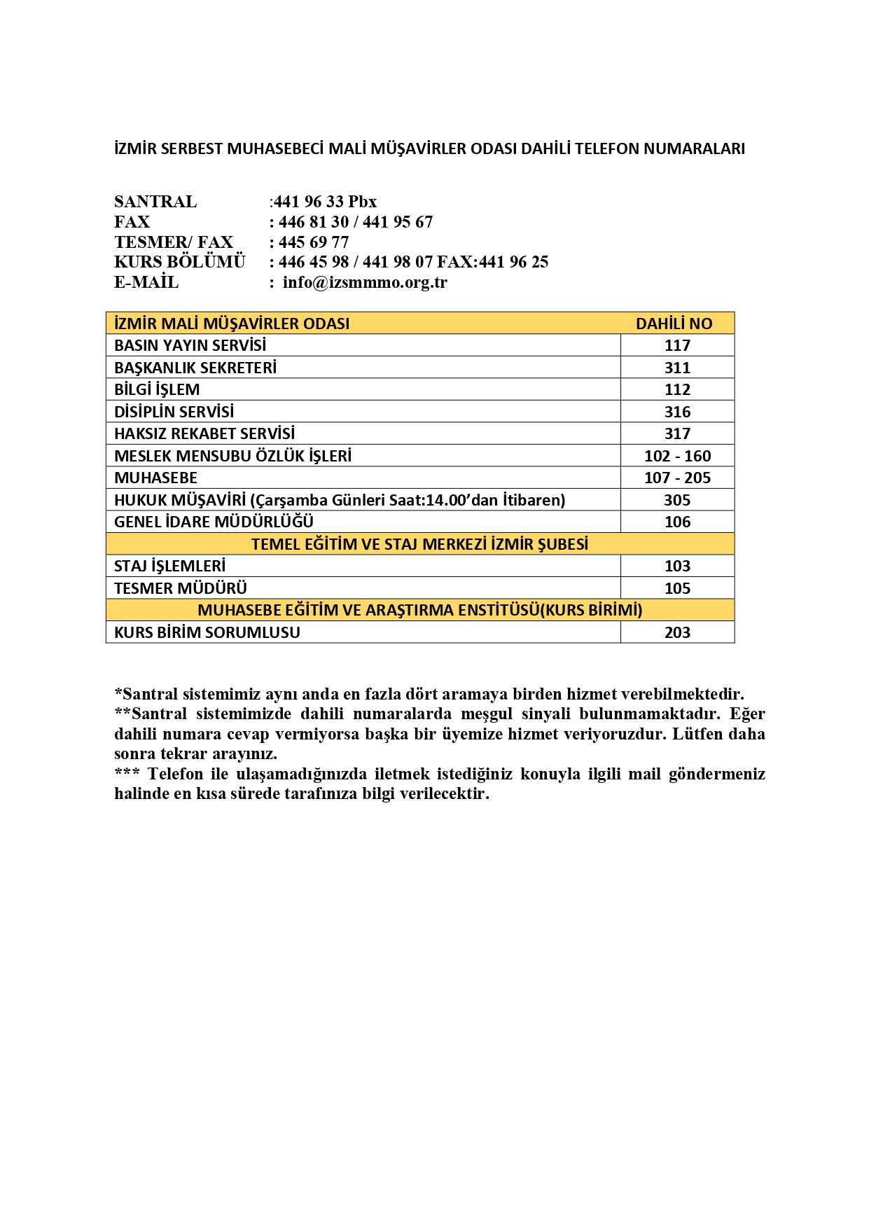 İZSMMMO Dahili Telefon Numaraları