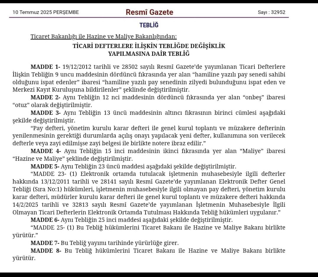 Ticari Defterlere İlişkin Tebliğde Değişiklik Yapılmasına Dair Tebliğ