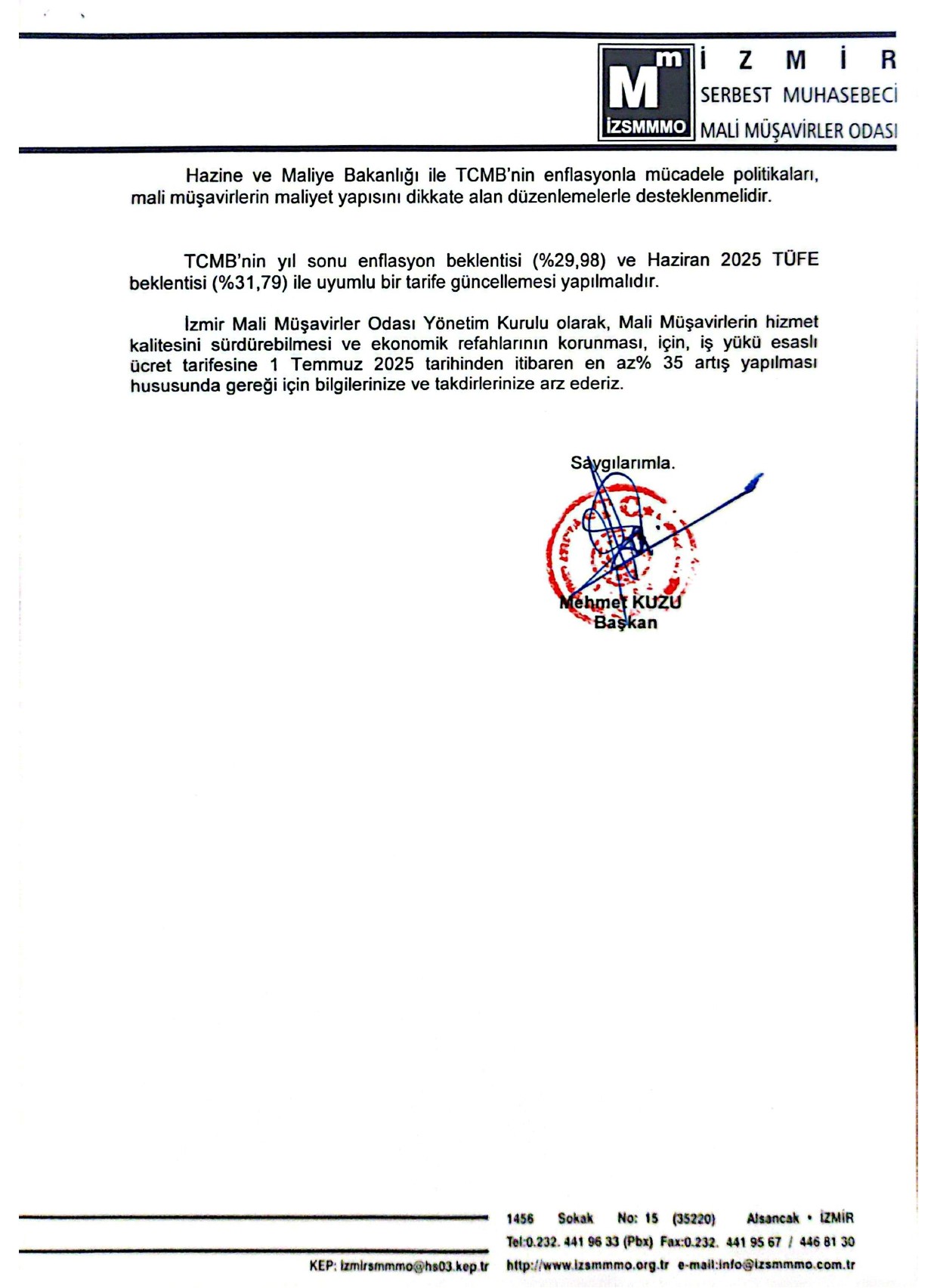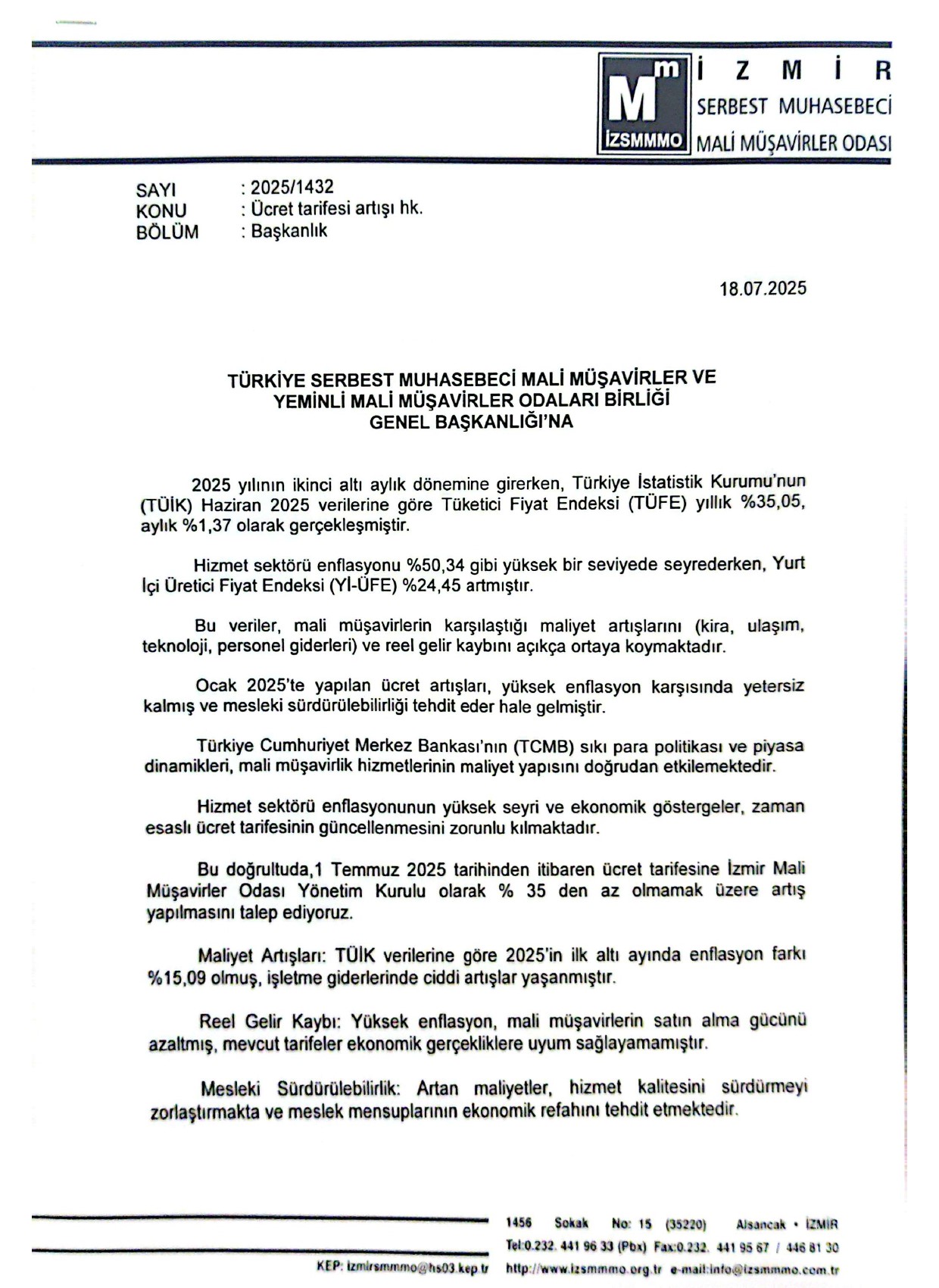 SMMM İş Yükü Esaslı Ücret Tarifesine %35 Artış Yapılmalıdır