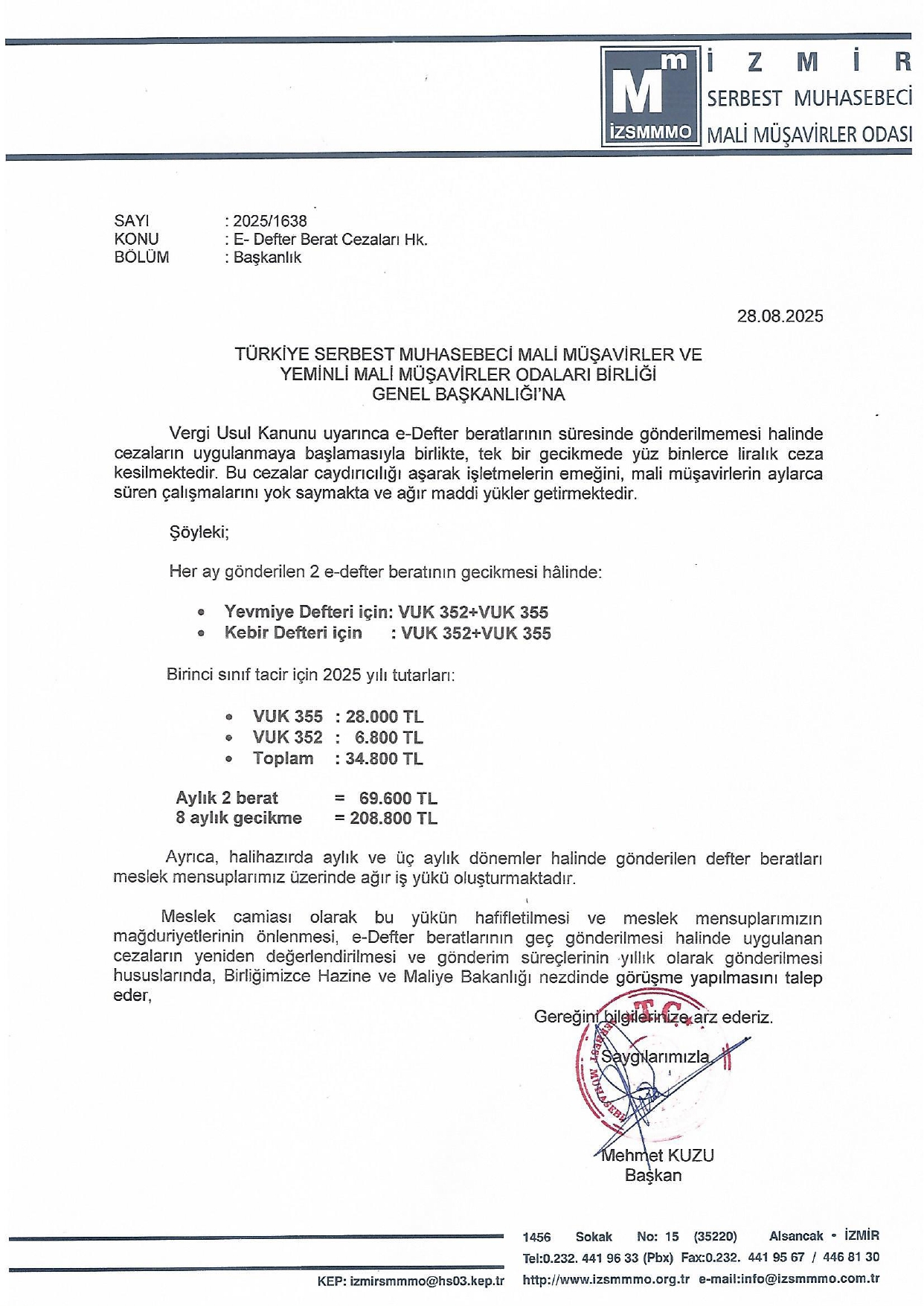 E-Defter Berat Cezaları ve Süreleri İle İlgili Talebimiz