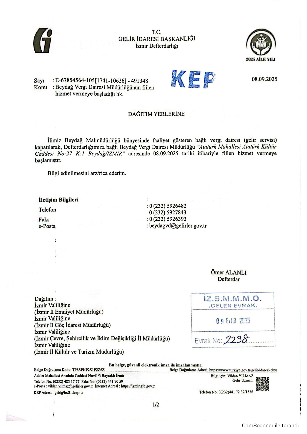 Beydağ Vergi Dairesi Müdürlüğü Fiilen Hizmet Vermeye Başladı
