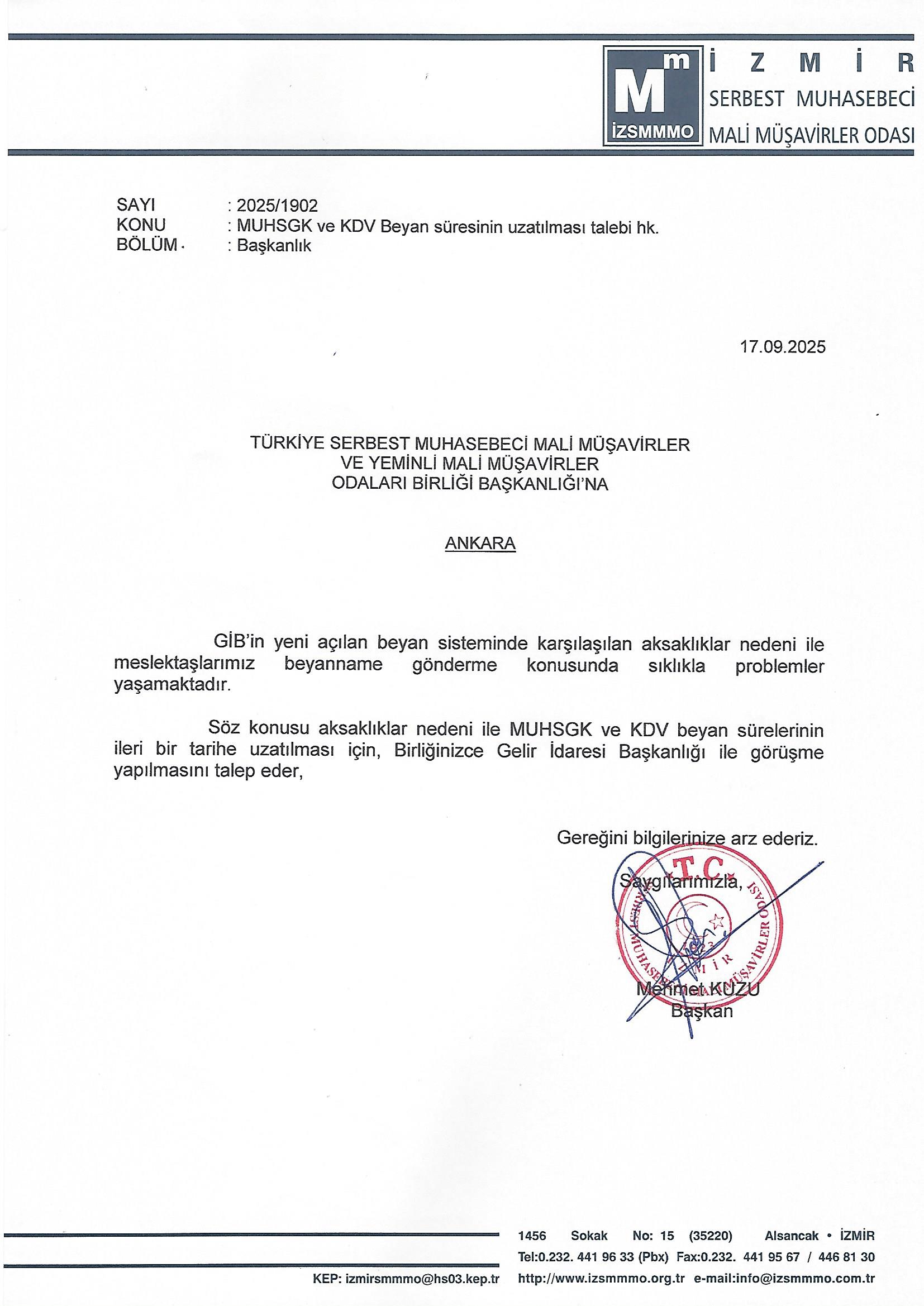 MUHSGK, KDV Beyan Sürelerinin Uzatılması Talebimiz