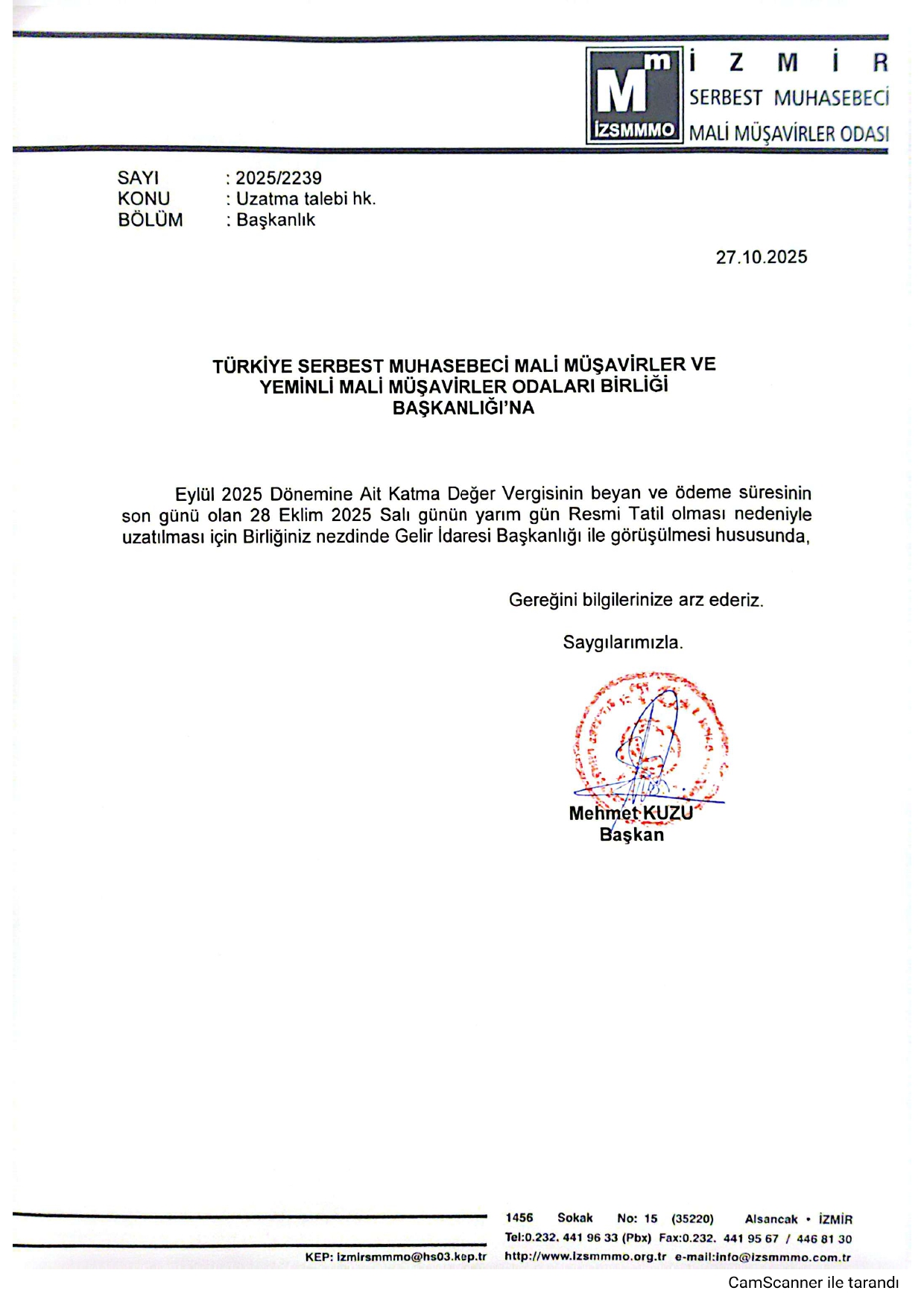 KDV Süre Uzatma Talebimiz