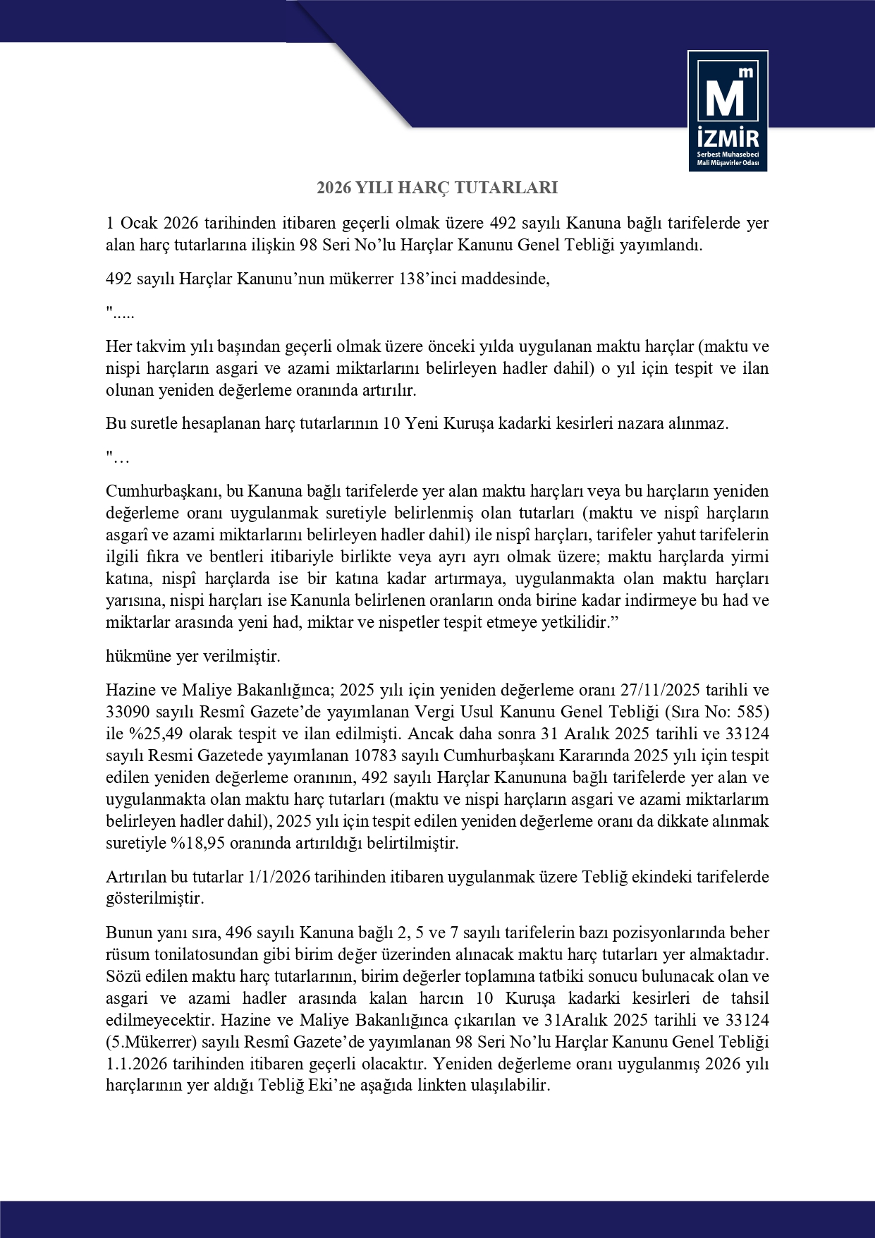 –– Harçlar Kanunu Genel Tebliği (Seri No: 98)