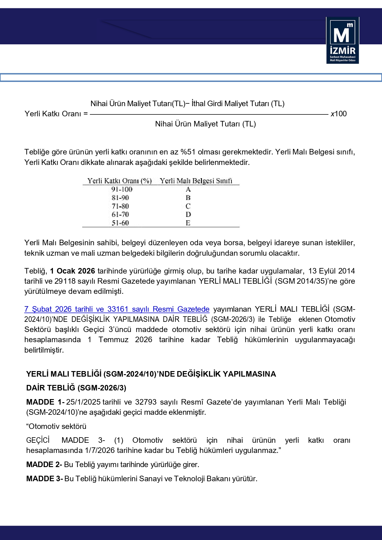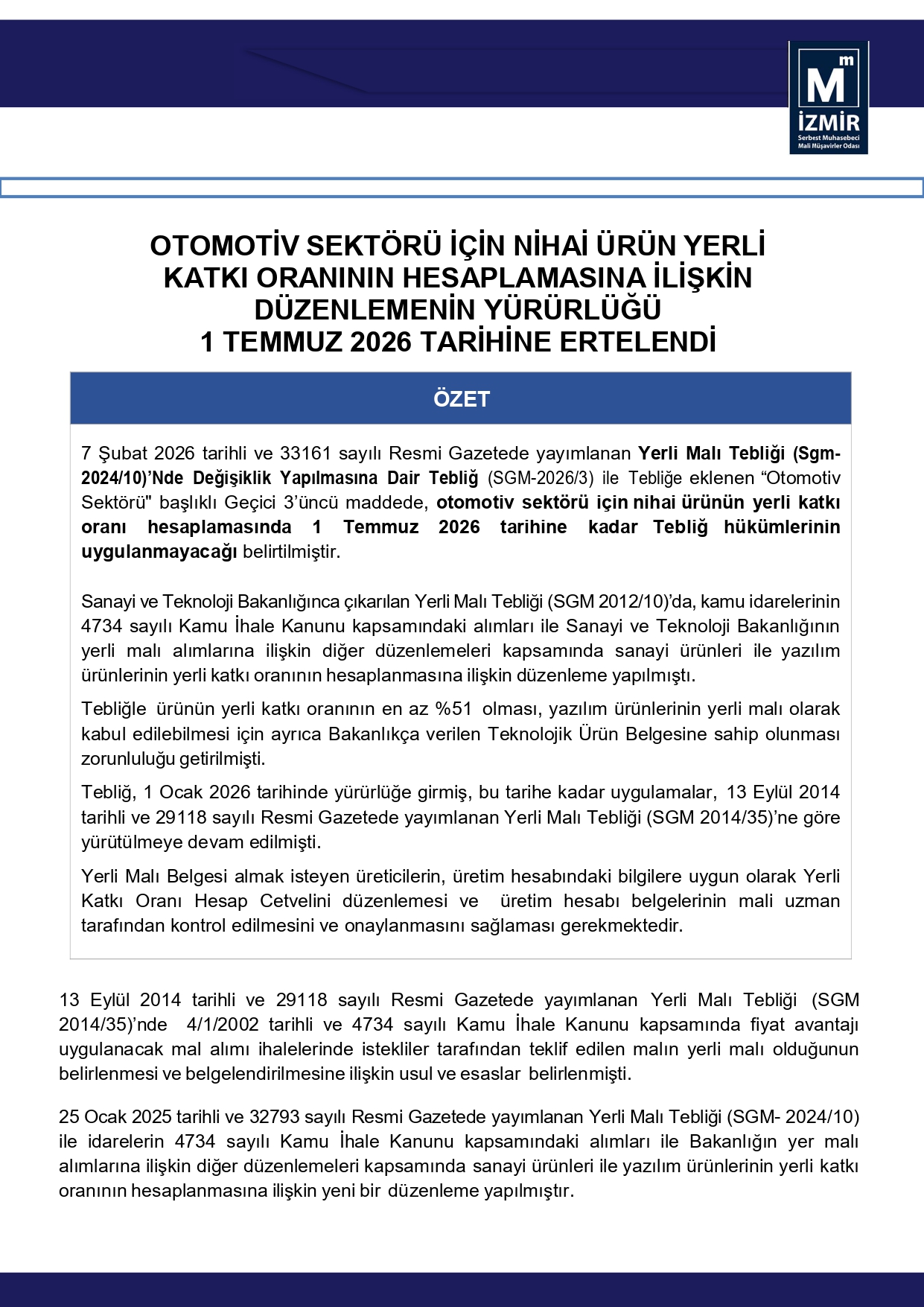 Otomotiv Sektörü İçin Nihai Ürün Yerli Katkı Oranının Hesaplamasına İlişkin Düzenleme 1 Temmuz 2026 Tarihine Ertelendi 10 Şubat 2026 Salı 287