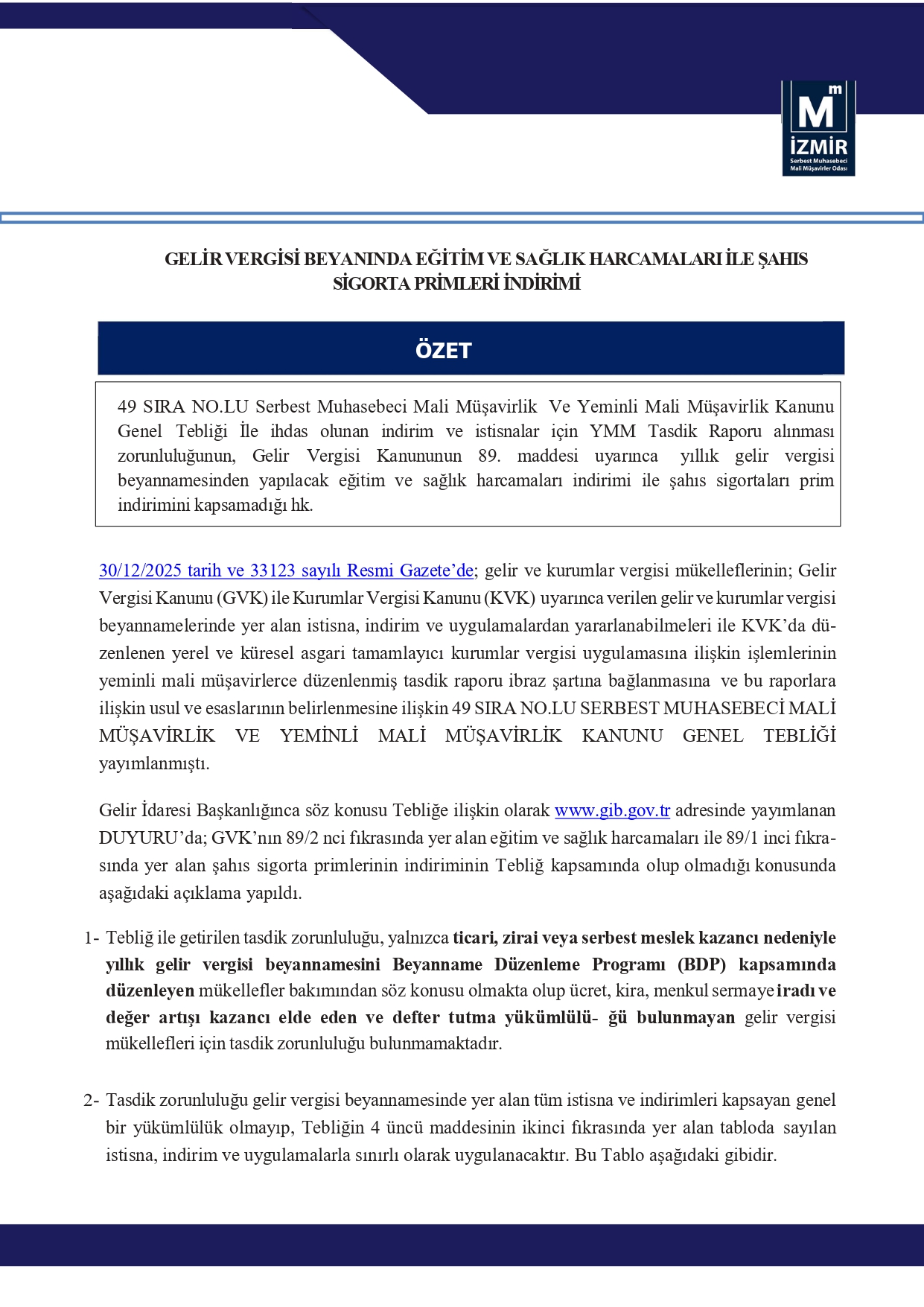 Gelir Vergisi Beyanında Eğitim Ve Sağlık Harcamaları İle Şahıs Sigorta Primleri İndirimi 26 Mart 2026 Perşembe 286