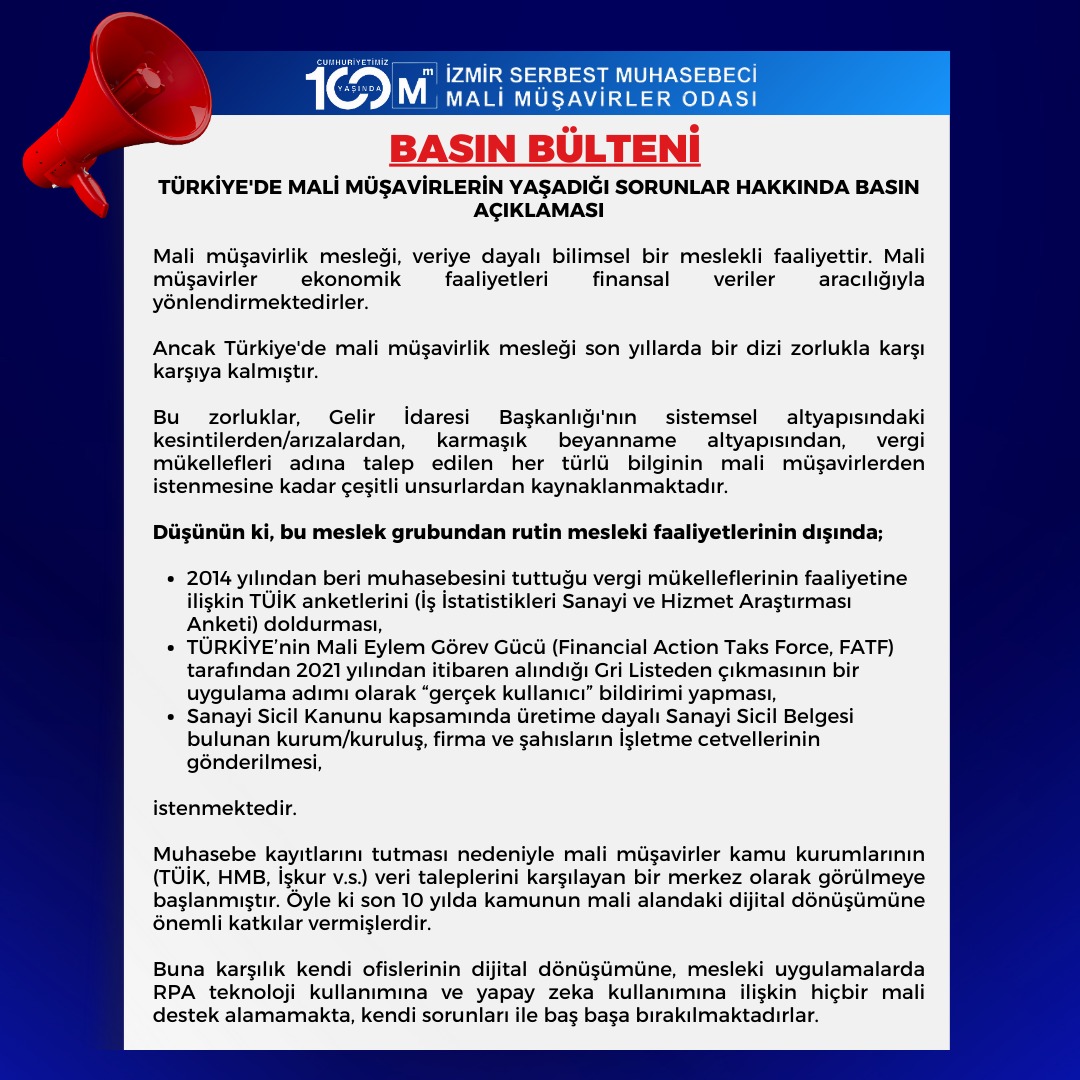 Güncel Mesleki Sorunlarımız İle İlgili İzmir Mali Müşavirler Odası Basın Bülteni