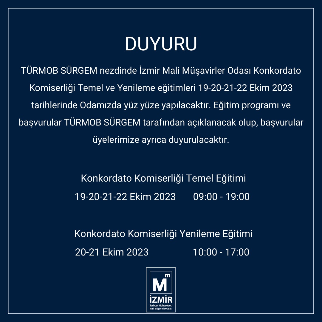 Konkordato Komiserliği Eğitimlerine İlişkin Duyuru