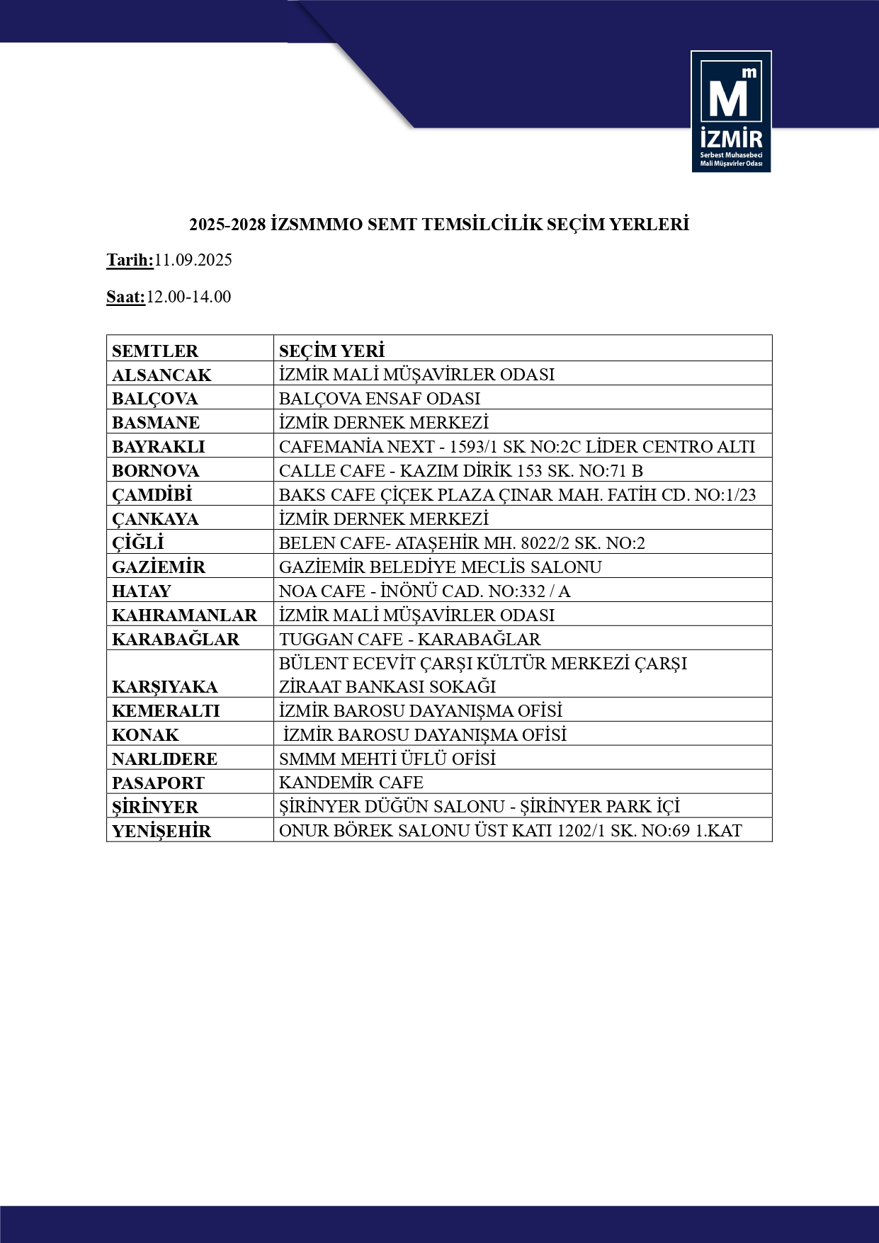 2025-2028 Semt Temsilcilik Seçim Yerleri