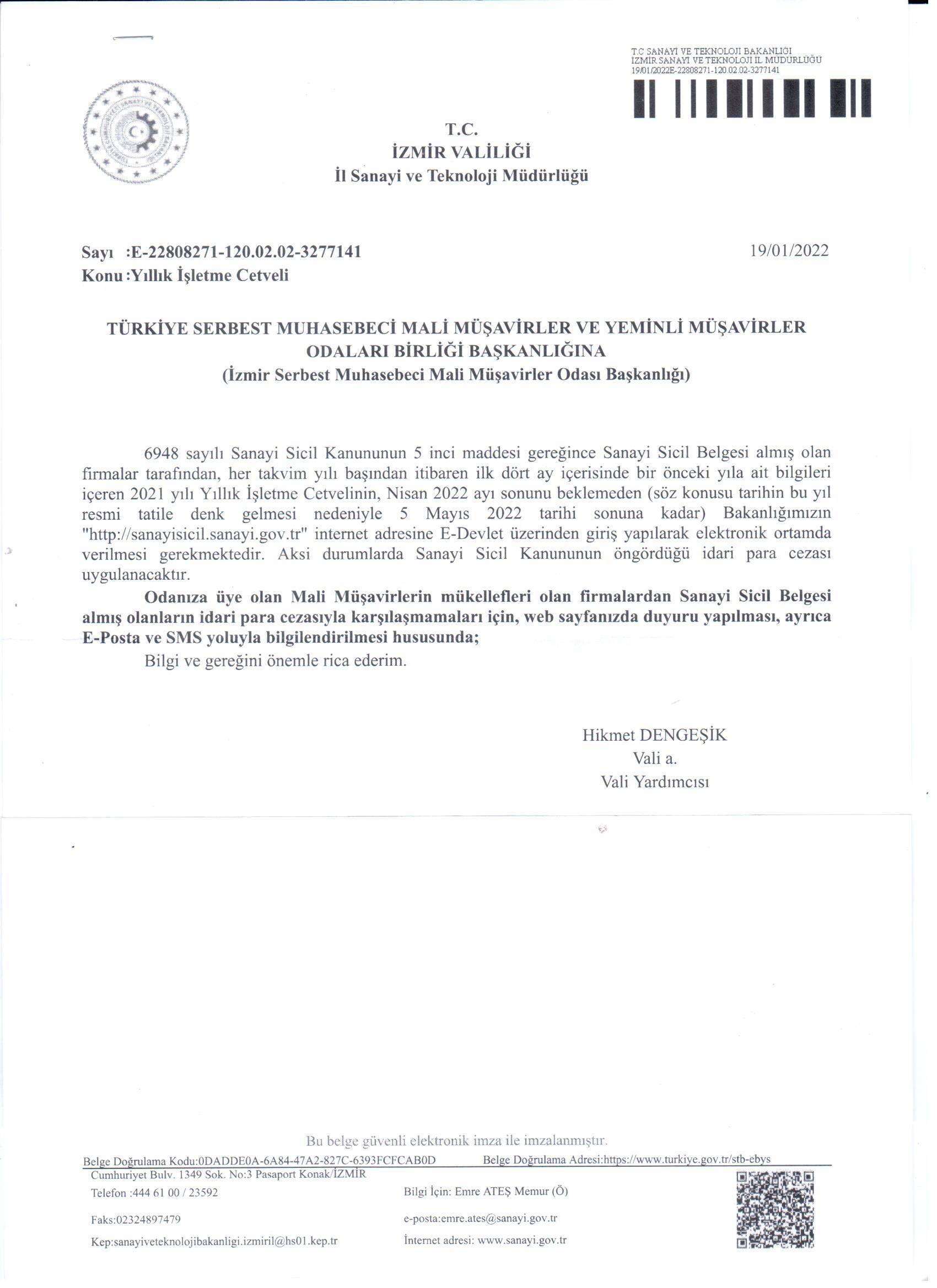 İzmir Valiliği İl Sanayi ve Teknoloji Müdürlüğü Duyurusu